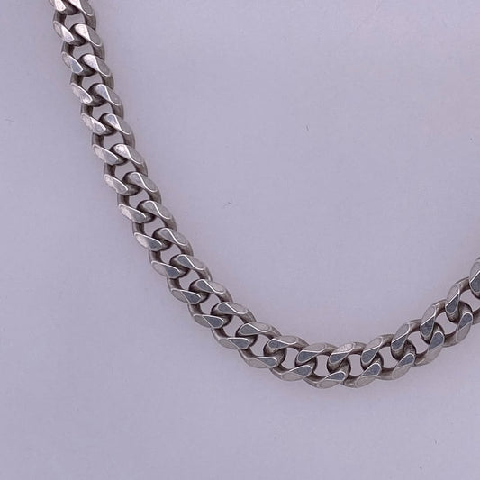 14k White Gold Thin Box Link Necklace W/ Round Diamond Pendant