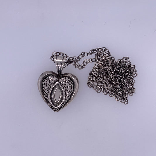 925 Sterling Silver Rolo Link Necklace With Heart Pendant