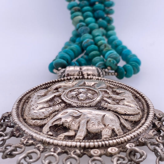 925 Sterling Silverleh Ladakh Necklace With Blue Stones And Animal Pendant