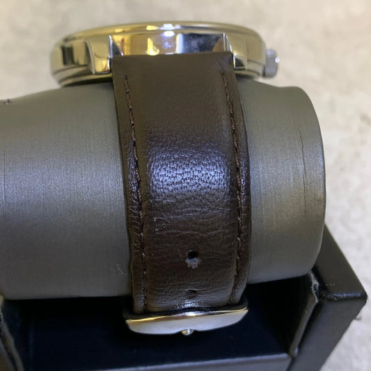 Timex Indiglo WR30M Men's Watch Day Date Silver w/ Black Leather Strap