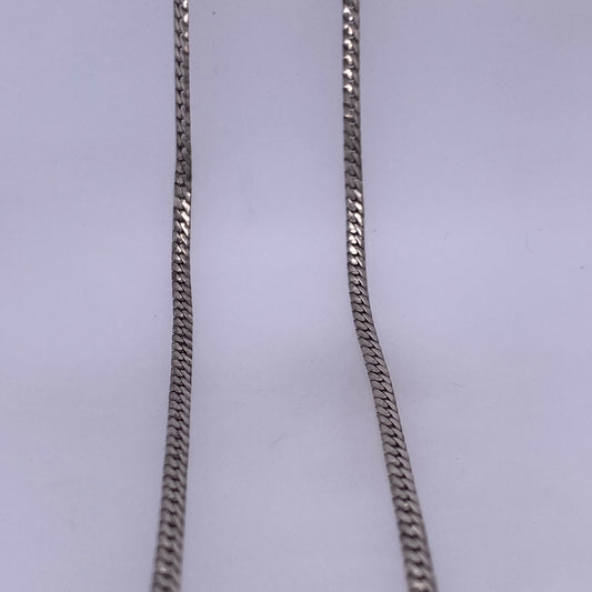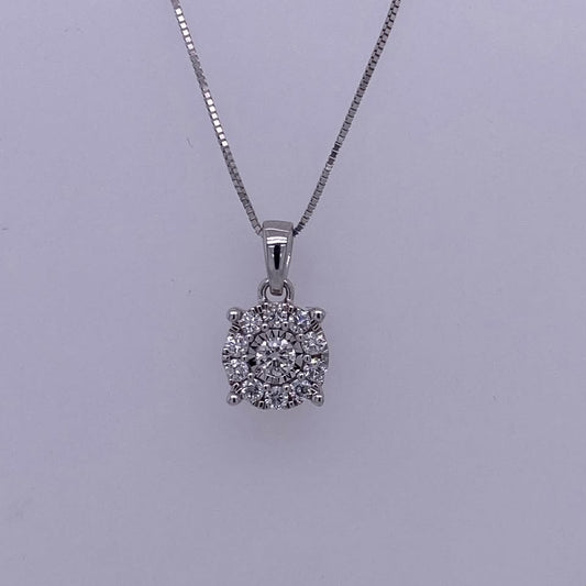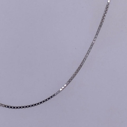 14k White Gold Thin Box Link Necklace W/ Round Diamond Pendant
