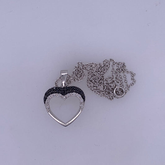 925 Sterling Silver Rolo Link Necklace With Black And White CZ Heart Charm